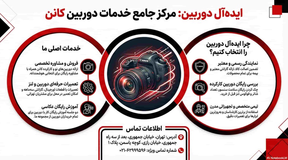 ایده آل دوربین به عنوان نمایندگی دوربین کانن در مرکز تهران و نمایندگی اصلی دوربین کانن، با ارائه خدمات جامع در حوزه فروش، تعمیر و آموزش، به یکی از معتبرترین مراکز تخصصی دوربین کانن تبدیل شده است. ایده آل دوربین دارای مجوز رسمی بوده و با ارائه گارانتی معتبر، امکان خرید دوربینهای جدید و کارکرده را با تضمین اصالت کالا فراهم میسازد. همه دوربینها در نمایندگی کانن از نظر سلامت سنسور، تعداد شاتر، و کیفیت لنز تحت بررسی دقیق قرار میگیرند و تنها محصولات اورجینال به مشتریان ارائه میشود.